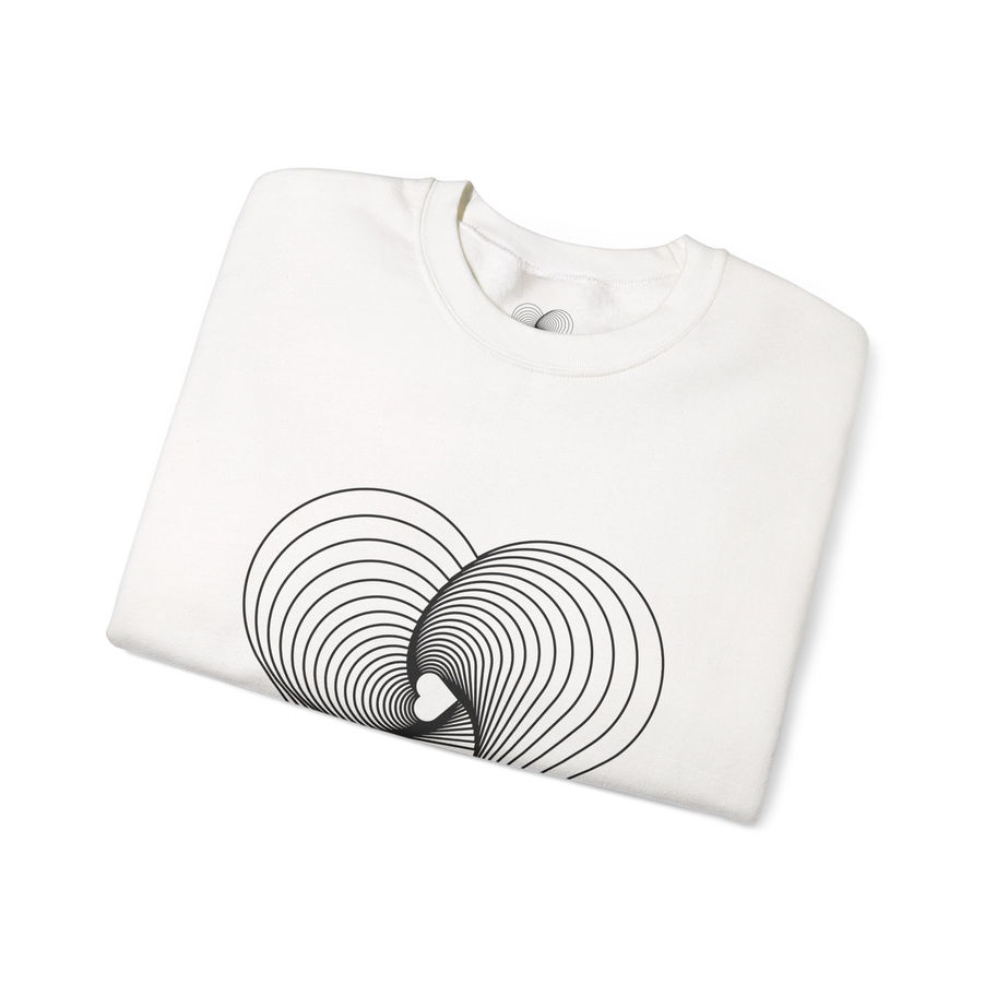 Gildan 18000 Sweat Shirt — Heart Line Art Optical Illusion. Soft, slightly oversized, and quietly expressive—this crewneck wraps you in everyday comfort while carrying a subtle, modern statement. The minimalist line-heart sits centered in clean black on a warm white backdrop, its layered curves suggesting motion and connection without shouting. Wear it at home with coffee, on evening walks, or layered under a coat when the city feels sharp. Breathable cotton-poly blend, ribbed collar and cuffs, and reinforced seams keep the fit steady through repeated wear. The result: a durable, low-key sweatshirt that reads thoughtful and lived-in, as if it’s been part of your rotation for years.